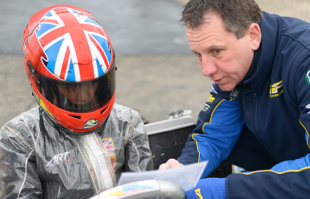 The RFM boss Ricky Flynn doesn't hesitate to go out in the rain, on the edge of the track to better train his young drivers. After having watched a few laps during the warm-up, he stops them and shows them the best lines on a map of the circuit, laminated to withstand the weather. His experience is particularly important regarding the wetter areas to avoid and where a driver must stay absolutely away from. Hot tips that really work are part of the instructional strategy of the famous English team.