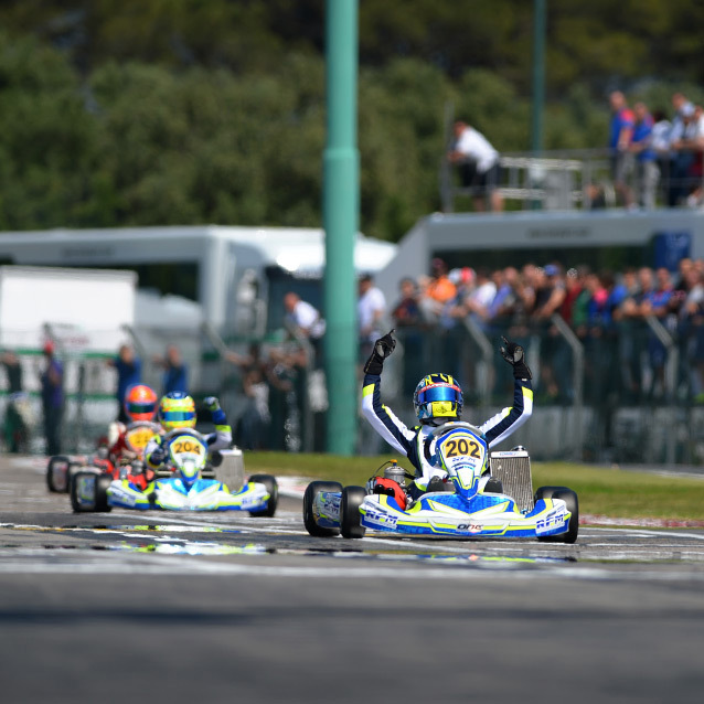 A perfectly managed upward trajectory for Enaam Ahmed led him to the final victory in KF-Junior. Third in the prefinal, he was able to take advantage authoritatively on the first lap of the final and spent 19 of the 21 laps in the lead. This excellent management of the meeting puts him in the lead in the championship standings. Also convincing, Logan Sargeant was 3rd fastest in qualifying and in the prefinal he undid a delay in the heats to move up from 23rd to 7th place before continuing his momentum to second position in the final. He is currently third in the championship. Max Fewtrell was in the top 10 after the heats and prefinal before taking 6th place in the final. There were up and down results for Sun Yeu Yang, winning the repechage, making a superb recovery of 16 places in the prefinal and was in the top 10 of the final until lap 6. An incident then dropped him to the back.