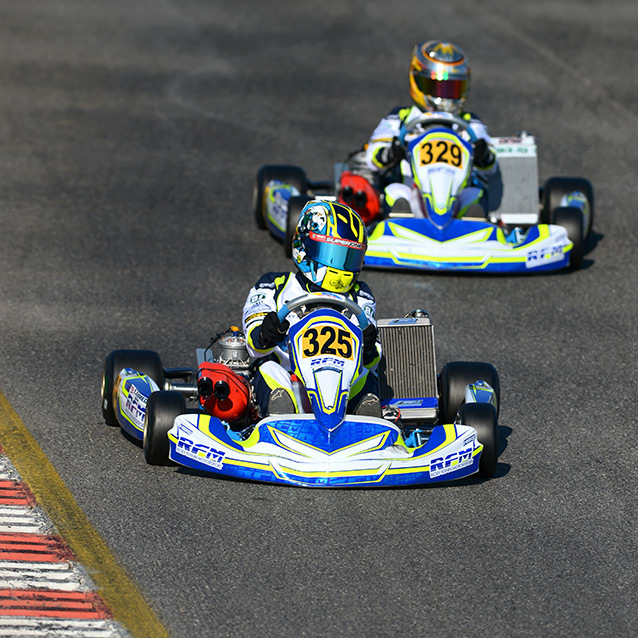RFM took 3 of its 4 drivers in KF-Junior into the top 10 of the Winter Cup with a special mention for Enaam Ahmed, who didn't drop out of the top 3 in the class after taking pole in his group in qualifying. Winner of the prefinal and final, he dominated the competition. The success of the British team was complemented by second place for Max Fewtrell, who was regularly in the leading group and very effective in the battles. The German David Beckmann didn't take long to fit into his new team: he was 10th in the final after getting very good results throughout the meeting. Finally, the Chinese driver Yue Yang proved convincing despite his lack of experience in European competition. He ran in around 15th place in the final before dropping back under the onslaught of his opponents.