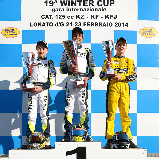 The Ricky Flynn Motorsport team worked hard during the off-season, which was shown by the performance of its drivers in the opening race of the 2014 season at Lonato. Enaam Ahmed and Max Fewtrell put their FA Kart / Vortexes on the top two steps of the podium in KF-Junior at the Winter Cup, while Jehan Daruvala set the fastest lap of the final in KF.